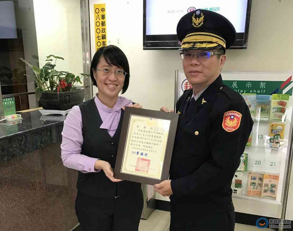 台南永康六甲頂郵局黃姓女行員,105年12月29日14時50分許,見62歲林姓婦人神情慌張提領新台幣200萬元,研判林婦可能遭詐騙,經報請警方到場查處,成功攔阻被害人受騙,台南市永康分局特頒感謝狀表揚致謝。