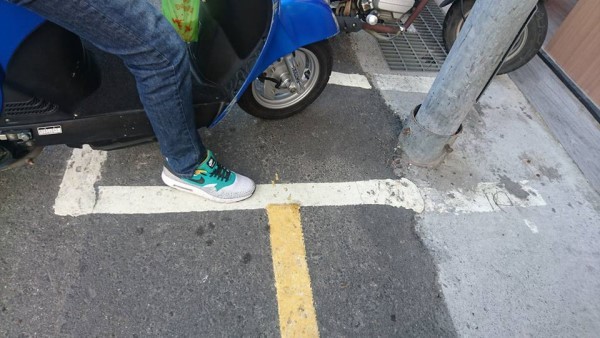 有網友在臉書社團「爆料公社」po出一張片,地點在台南市區,她留言「試問~怎麼把車塞進停車格裡?」只見照片中看到一排機車停車格中,最右邊的格子內,就杵了一根電線杆,而且還在格子正中間,機車根本無法停進格子內。