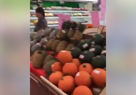 ▲影片中可以看到超商內設置的蔬果區。(圖/翻攝自爆料公社,下同)