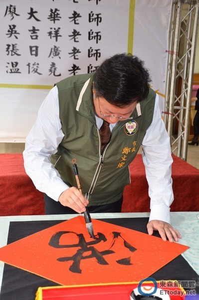 桃園市桃園區公所10日於該所,舉辦「2017金雞報喜—揮毫迎新春」活動。蒞臨活動會場的桃園市長鄭文燦表示,雞年代表吉祥,雞鳴也代表天光及希望。桃園區公所邀請謝幸雄、廖大華、吳吉祥、江金晃、溫俊堯等五位書法家,到區所現場揮毫,增添年節氣氛,也祝福桃園市鄉親,新的一年來到都能充滿新希望。