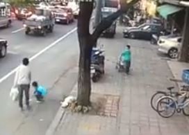 網友在「爆廢公社」分享該影片,並留言表示「一個媽媽帶著三個小孩,最小的還坐在嬰兒車,沿街撿拾人造垃圾,煙蒂,檳榔渣,頓時覺得感動…」。不同監視器的畫面中可見,3位小朋友走在前頭,其中1明還坐在嬰兒車中由哥哥推著向前,媽媽則是拿著一只垃圾袋,沿著人行道撿垃圾,孩子們也自動自發地彎下腰來幫忙。