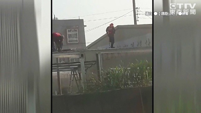 ▲黃宇論爬上屋頂工作。