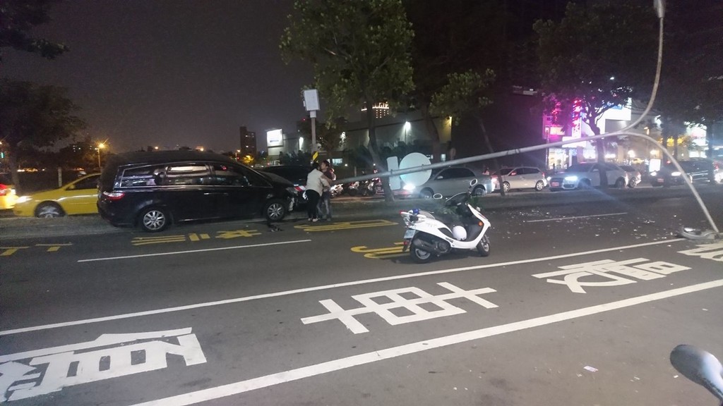 高雄市大順路與自由路口11日晚間7時許發生一起嚴重車禍,一輛黑色休旅車行駛中突然往分隔島爆衝,強大的衝擊力到令路燈當場橫躺在地,但一旁的測速照相機卻是安然無恙。網友看了照片後忍不住哀嚎,「撞錯支了啦!」
