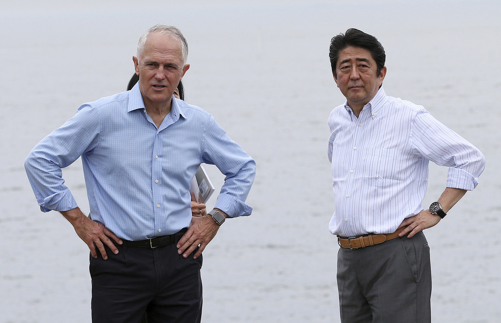 日本首相安倍晉三日前出訪亞太4國,第一站到菲律賓就與總統杜特蒂簽署了5年1兆日圓(約合新台幣2800億)的投資計畫,甚至參觀了對方的臥房,還大啖菲式米糕等美食。結束在2天訪問後,安倍馬不停蹄前往澳洲,並於14日和澳洲總理滕博爾(Malcolm Turnbull)發表聯合聲明,強調跨太平洋夥伴協定(TPP)是「不可或缺的當務之急」。