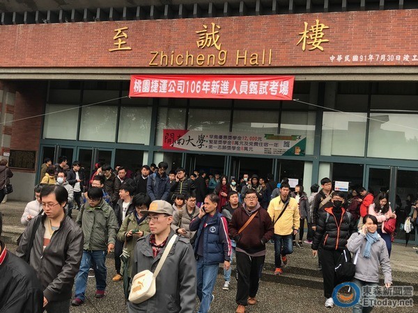 桃園捷運公司新人招募筆試,14日舉行。報考人數12380有10696人到考,雖然14日天候不佳,卻僅有1684人缺考,爭取210個職缺,缺考率為13.5%,錄取率略為提升至2%,但仍比國家考試的3%還低,競爭激烈。