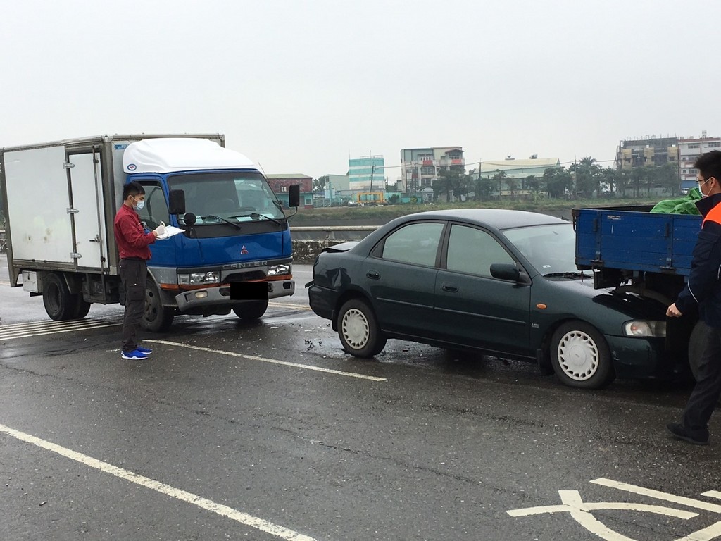 嘉義市政府消防局14日上午11時38分許接獲報案,指稱華興橋上發生車禍,立即派遣第二大隊後湖分隊救護車前往救援。救護人員抵達現場時,發現為3輛汽車追撞,駕駛皆能自行走出車外,人沒有大礙。
