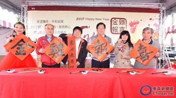 隨後,鄭文燦與出席來賓寫下「金雞報喜」祝福所有市民;包括桃園市議員蘇家明、市府政風處長沈鳳樑、警察局副局長顏德麟、衛生局副局長陳世璋、守望相助大隊大隊長蕭毓中一同出席活動。