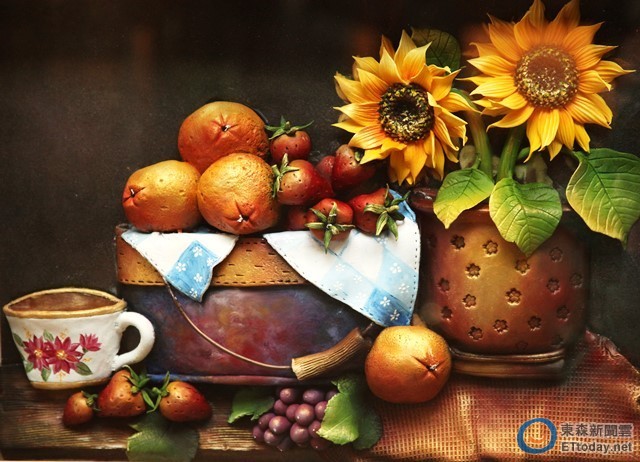 複合媒材創作形式的「靜物」,使用黏土雕塑「實物」的形象,經過構圖組合,再以油彩繪畫的手法讓「實物」雕塑重生,立體的形象宛如現實場景,雕塑加繪畫的雙重技法成果讓人眼睛為之一亮。