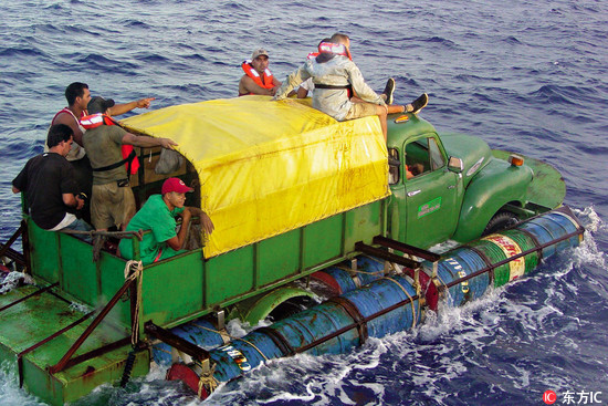 ▲古巴移民2005年曾將卡車改裝成船,企圖偷渡到美國。(圖/東方IC)