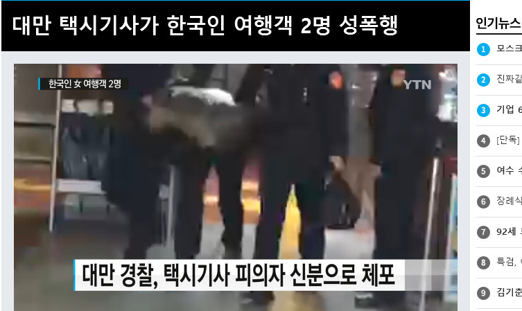南韓「中央東洋廣播公司」(JTBC)引述台灣媒體報導內容,畫面帶到台灣計程車奔馳,以及台北市街景畫面。報導指出,3名韓國女性於13日晚間8時在台北市搭乘計程車觀光時,喝下司機送的飲料後即失去意識。