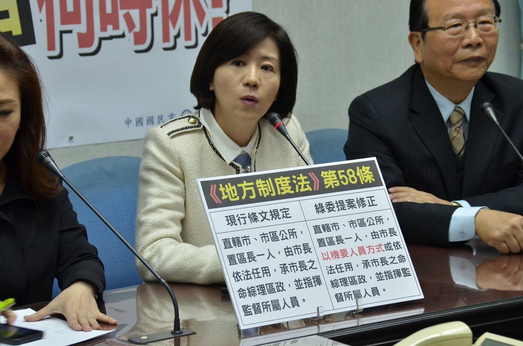 民進黨立委羅致政、陳其邁、陳亭妃等人提出《地方制度法》部分條文修正草案,區長「由市長以機要人員方式或依法任用」,引發討論;而國民黨立法院黨團16日上午也召開記者會,強調堅決反對此一修正案,並痛批「綁樁」企圖明顯,嚴重破壞文官體制、打擊公務員士氣。