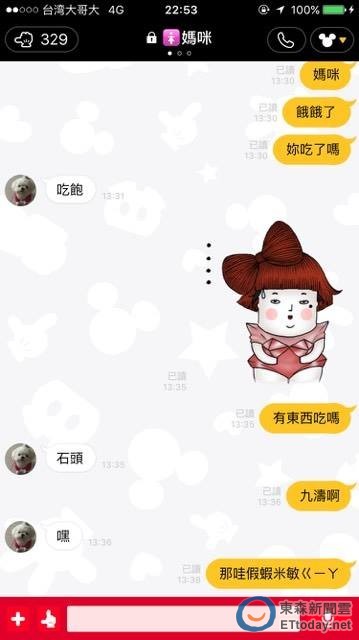 「Shiu Min Jie」也提供其他和媽媽的對話截圖,有次他說「愛妳喔,回家親一個」,媽媽回「是,少爺」;另一次,他說,肚子餓了,問家中有東西吃嗎?結果媽媽回「石頭」。