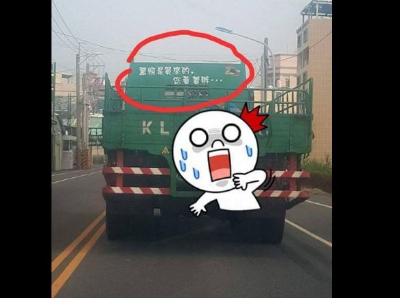 臉書粉絲專頁「爆料公社」於17日上午分享則貼文,一名陳姓網友開車上路時,碰上一輛綠色的大貨車,沒想到仔細一看,貨車的後方竟大喇喇貼著「駕照是買來,您看著辦…」的標語,讓原PO看了會心一笑。照片PO出後,也引起網友的熱烈討論,紛紛留言「很霸氣!很跩!有個性!」、「很有警世作用」等語。