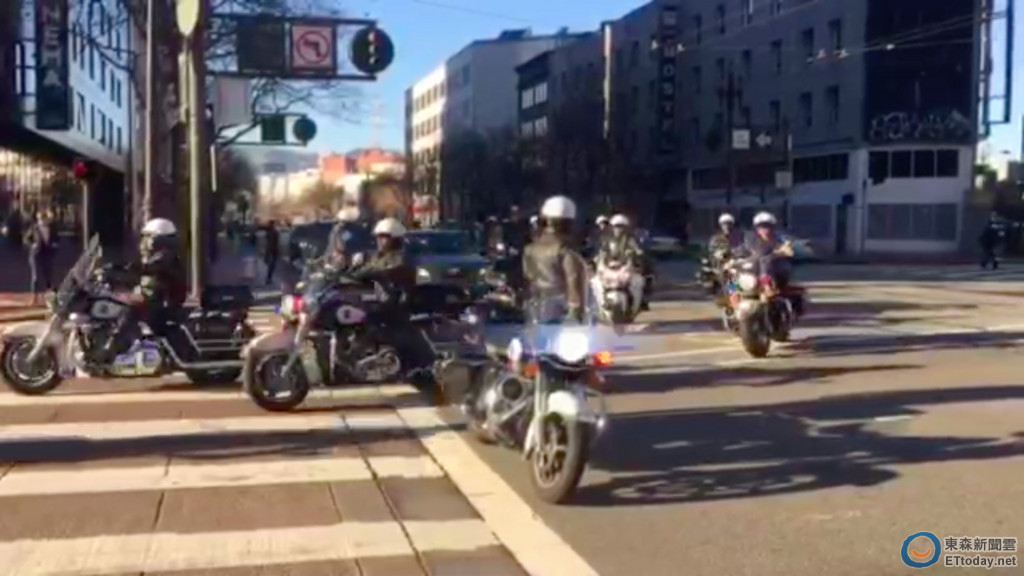 ▲蔡英文造訪推特舊金山總部,美方高規格派60輛重型機車開道。(圖/讀者提供)