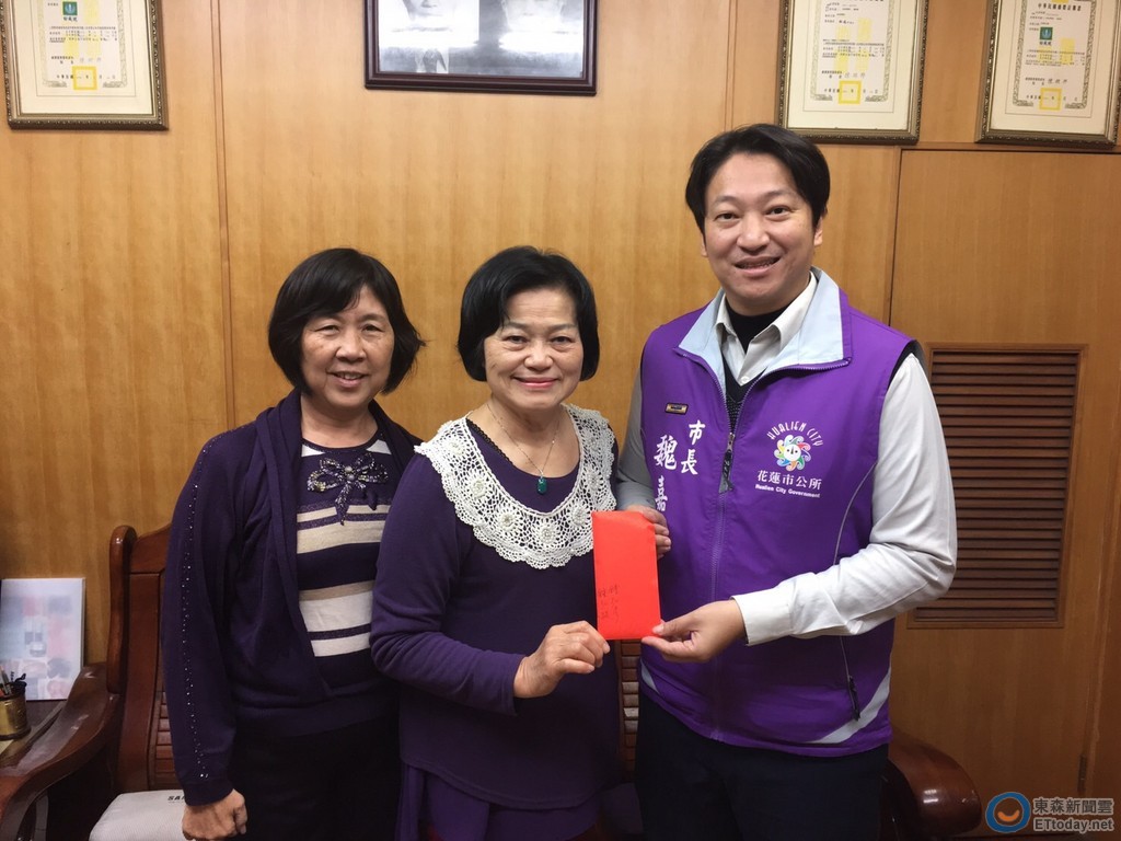 ▲花蓮市長魏嘉賢的姑姑魏桂英,以兒子鍾弘彥的名義捐出三萬元,認購十桌年菜,為年底的歲末關懷行動增添能量。(圖/花蓮市公所提供)