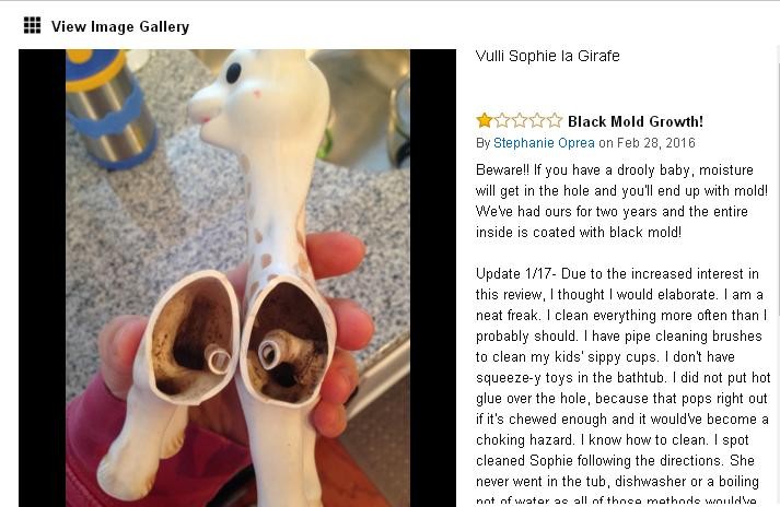 縱橫母嬰界、超多人推薦的固齒器「蘇菲長頸鹿」,被外國網友Stephanie Oprea批露,「蘇菲」的內部竟然累積了厚厚的黴菌,照片一公佈,馬上引起網友驚慌轉發,大呼:「實在太可怕了!」