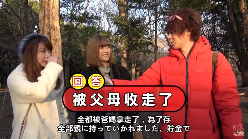 被問到如果拿到10萬日幣(約新台幣3萬6000元),會如何使用?有女學生說,為了不要後悔,她會花1萬存9萬;也有女生說要當作年老存款;另一名女生說,「想參加豪華轎車派對,大手筆地揮霍,然後喝著香檳。」