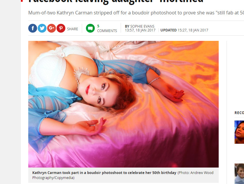 英國一名女老師卡曼(Kathryn Carman)日前為了慶祝50歲生日,拍攝一系列穿著蕾絲內衣的爆乳寫真,更自豪地將照片是上傳至自己的臉書,想要表達自己「年過50仍是一枝花」。不過卡曼20歲的女兒愛麗絲(Elise)看到這套作品後,似乎不這麼認為,更直呼「好羞恥」。