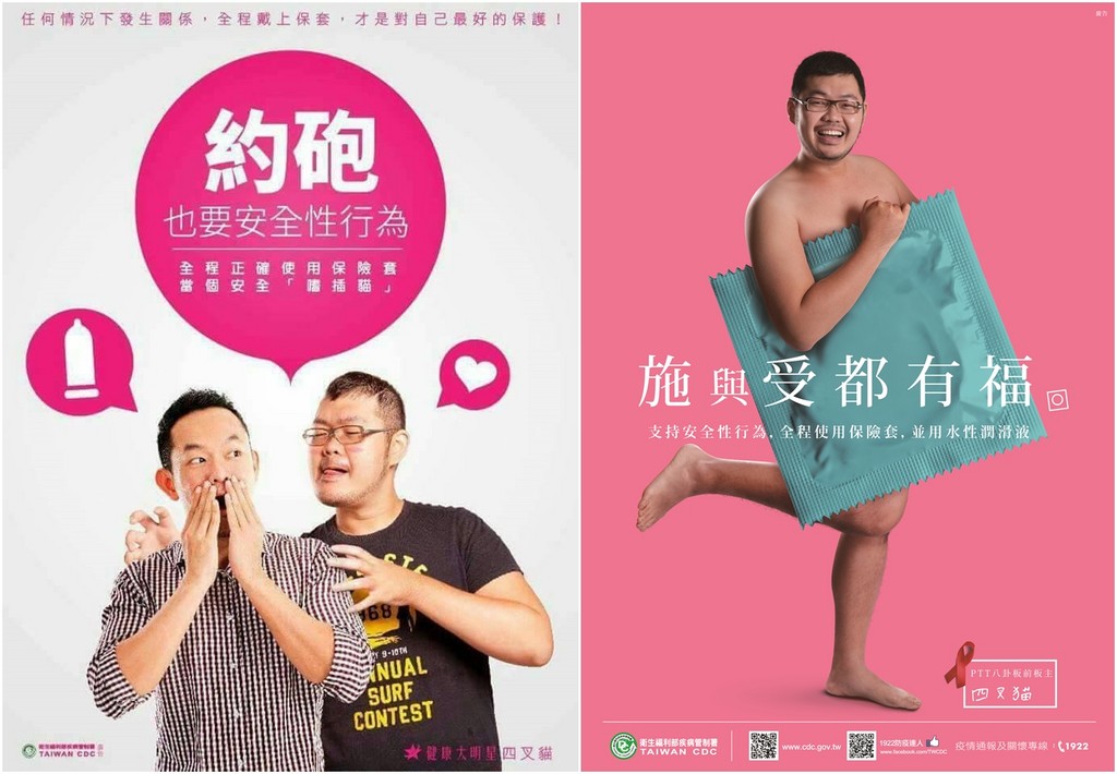 ▲網路紅人四叉貓曾經受到衛福部邀請拍攝海報,宣導使用保險套。(圖/衛生福利部疾病管制署網站)