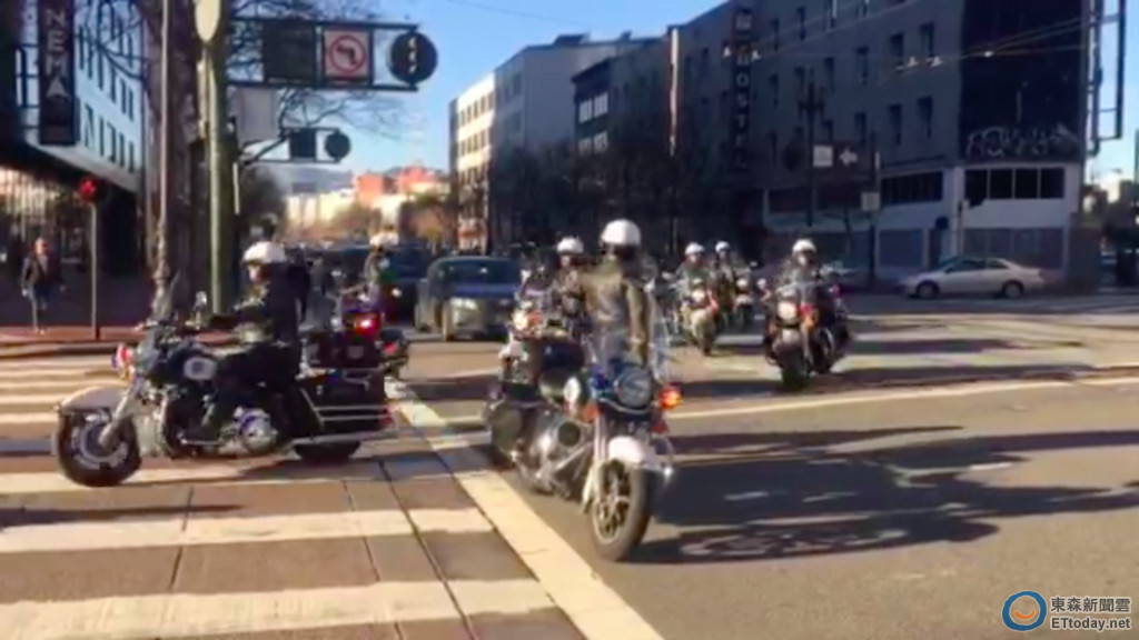▲蔡英文造訪推特舊金山總部,美方高規格派60輛重型機車開道。(圖/讀者提供)