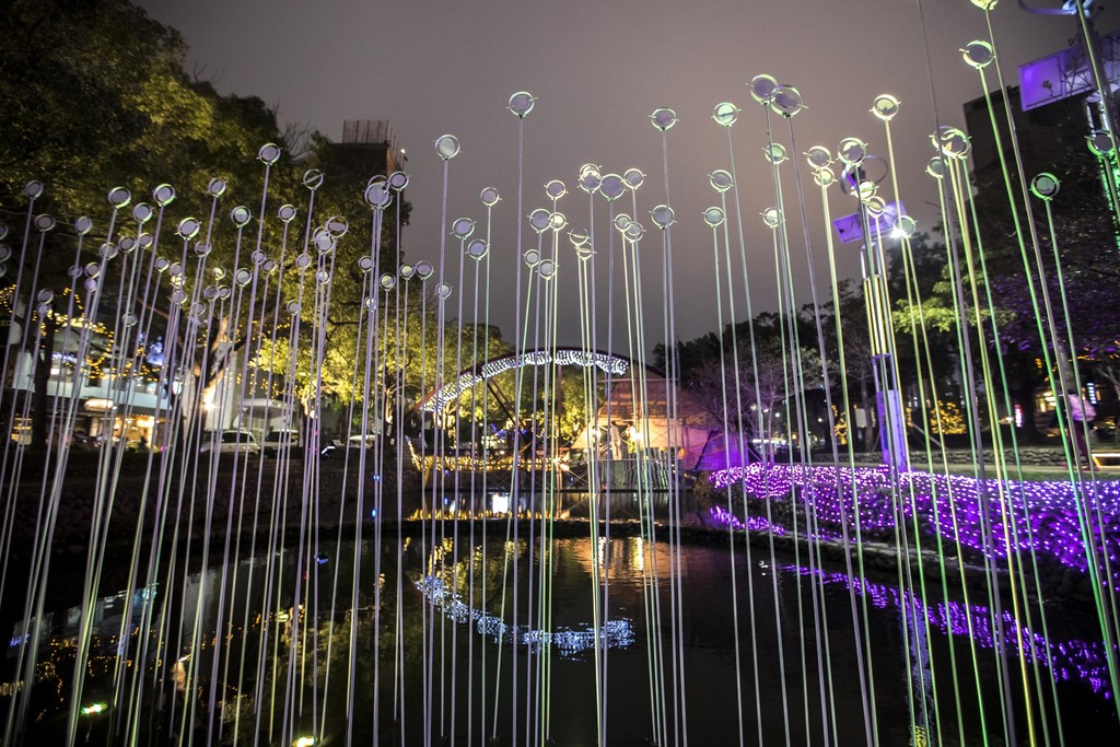 林智堅說,7件藝術燈作環繞著新竹獨有「風」之意象,延伸發展各項創作,燈區主要在護城河沿岸,包括去年12月才完成改造的「親水公園段」,展現全新面貌,現在市民經常沿著河畔散步、運動,年輕朋友們更是手牽手漫步,新竹市成為一座適合戀愛的幸福城市,春節期間設置藝術燈區更「點亮」護城河,讓城市更浪漫,也帶給民眾更多想像,歡迎一同來欣賞。