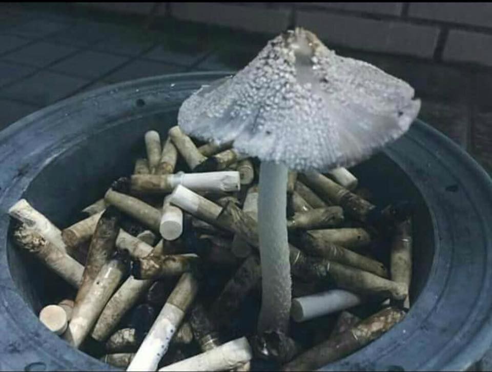 眼睛業障重!一名網友貼出照片,表示朋友公司的菸灰缸竟然長出香菇,超新奇畫面引起網友們熱議,不少人看完紛紛笑回,「千年一見...快放進植物園保護區」、「吸取邪惡尼古丁生長的妖菇」、「千年傳統,全新感受,風乾之後,可切片口含」。