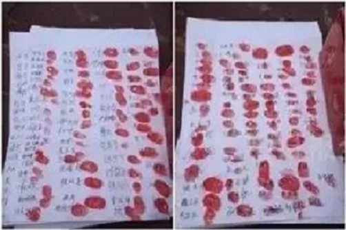 ▲3000多位村民蓋手印聲援朱水根。(圖/翻攝自常熟日報)