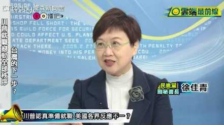 美國準總統川普即將就職第45任總統,而民進黨副秘書長徐佳青20日則在《ETtoday東森新聞雲》直播節目《雲端最前線》中分析,以現在局勢變化,顯然川普不想依照以前的遊戲規則走,像是與中國的關係,他最在意不是一中原則、一中政策,而是中國過去的貿易障礙能否降低;以這樣的邏輯來看,川普短期內應會以較為強硬的態度面對中國,「台灣會不會成為受害人,這是要謹慎評估的。」