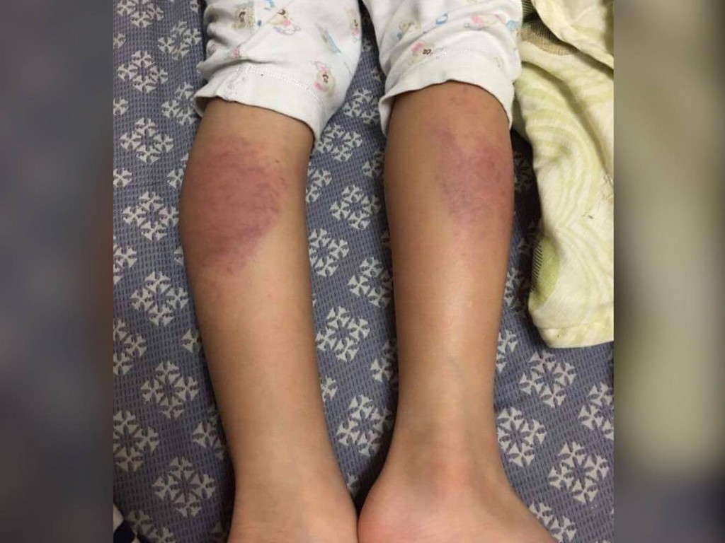 ▼孩童的雙腿雙手都遭到老師怒打,引網友譴責。