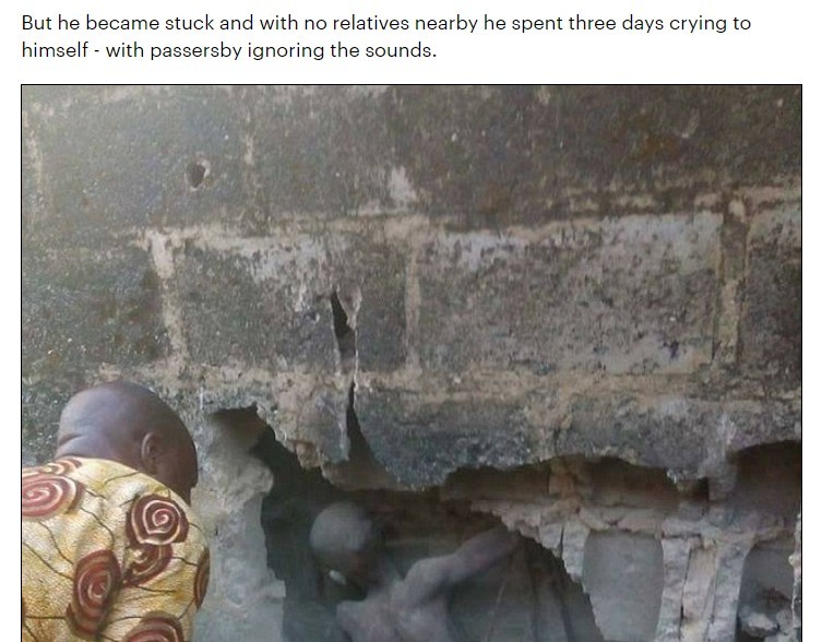 奈及利亞翁多州12歲男童沙卡(Aduragbemi Saka)日前被人發現卡在牆內30公分的牆縫,一卡就被卡了3天,奇怪的是,在他受困的日子裡,不管怎麼哭叫都沒有人注意到,最後竟然是靠著唱歌,才幸運被人發現。