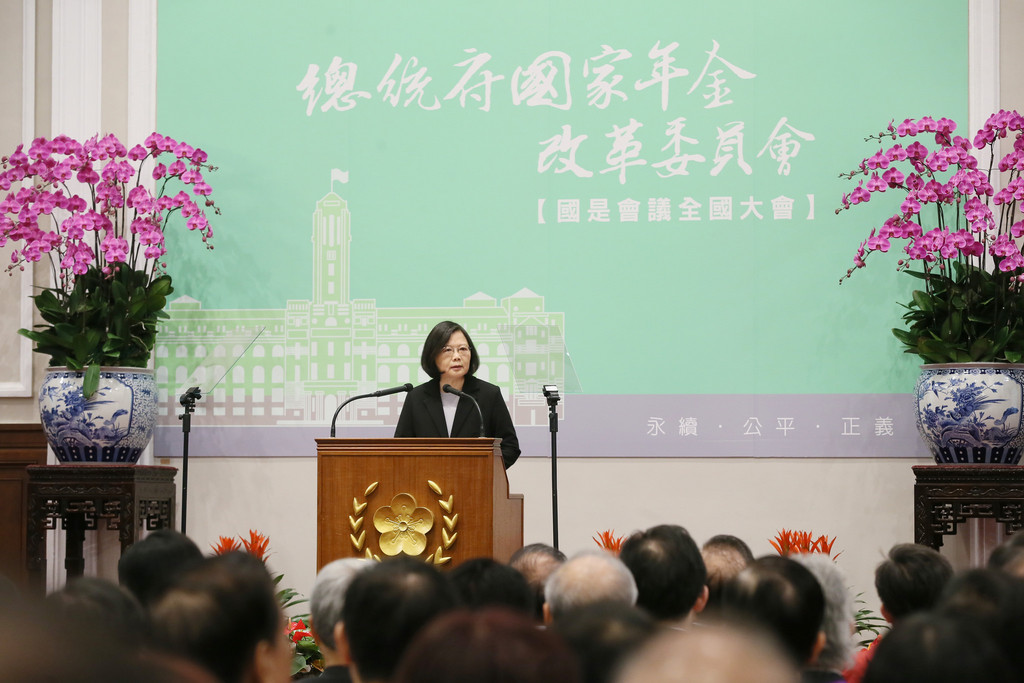 ▲總統蔡英文於年金改革國是會議前致詞。(圖/總統府提供)