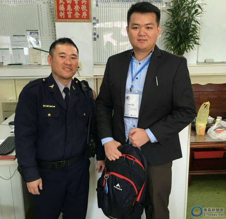 立人派出所警員黃致遠,於19日上午11時許,接獲民眾SEO ZIH SIANG(馬來西亞籍)報案,稱他於台南火車站搭計程車至成功路富信大飯店住宿,下車後進入飯店內辦理住房手續時,發現其一只背包遺留在計程車上,內有筆電及平板電腦,因筆電內有其重要之研究檔案資料,報案人心急如焚,趕緊到派出所報案請求警方協助。