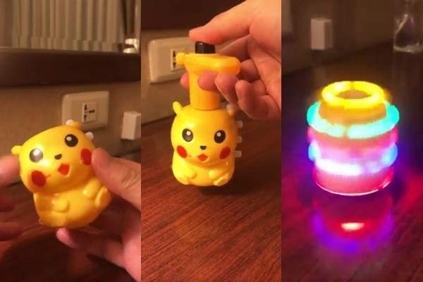 黃色的塑膠外殼被做成皮卡丘造型,頭頂卻像是被削過一般呈現詭異的水平面,原來,這隻皮卡丘竟然是陀螺玩具。只見RAGA將類似發條的發射器插入皮卡丘頭部,用力轉了數圈後按下黑色的發射鈕,皮卡丘一落地後就開始拼命旋轉,不但發出炫目的七彩霓虹光,還出現「皮卡皮卡皮」的RAP語音。