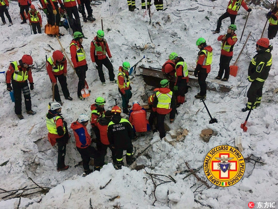 ▲義大利地震引發雪崩,飯店內30多人遭活埋,救難人員不斷槍救。(圖/東方IC)
