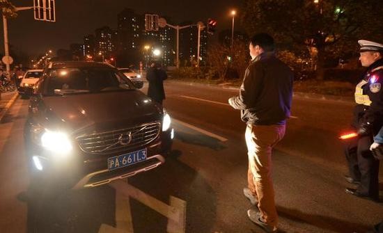 ▲警察抓濫開遠光燈。(圖/澎湃新聞,下同。)