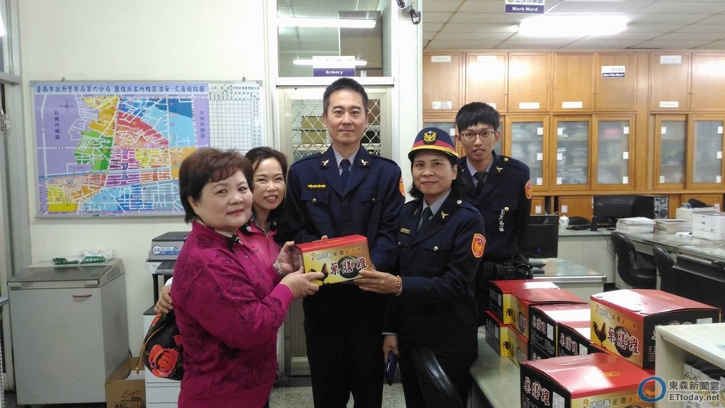 市警六分局長吳清飛強調,:維護治安是警察的職責和持續性的工作,近兩日冷氣團來襲,台南溫度驟降,市議員林美燕隨即率轄內知名企業家,帶藥膳雞年菜至六分局為員警同仁加油打氣,無異是為警察團隊注入暖流,相信警察同仁都能感受這股溫暖,並用心投入工作、戮力以赴,讓民眾有個平安愉快的春節假期。