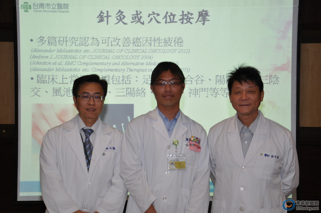▲台南市立醫師中西醫合併治療團隊,吳星賢部長、曾碩平醫師、蘇守毅主任(左起)等人,提供癌友妥善有效的醫療服務。(圖/市醫提供)