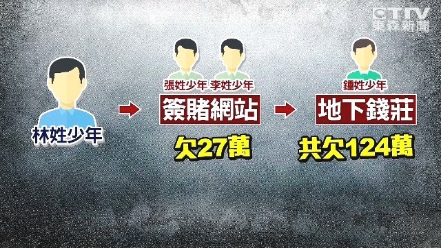 高雄一名就讀高職的未成年少年組簽賭集團,介紹同學上網簽賭,害得林姓同學沉迷賭博欠下27萬元,再介紹他去向地下錢莊借錢,利滾利後總共欠下124萬元的龐大債務,因無力償還,林姓少年的父母報警舉發,而這案件中的被害人,還有三名主要嫌犯,竟然通通都只是高職學生。