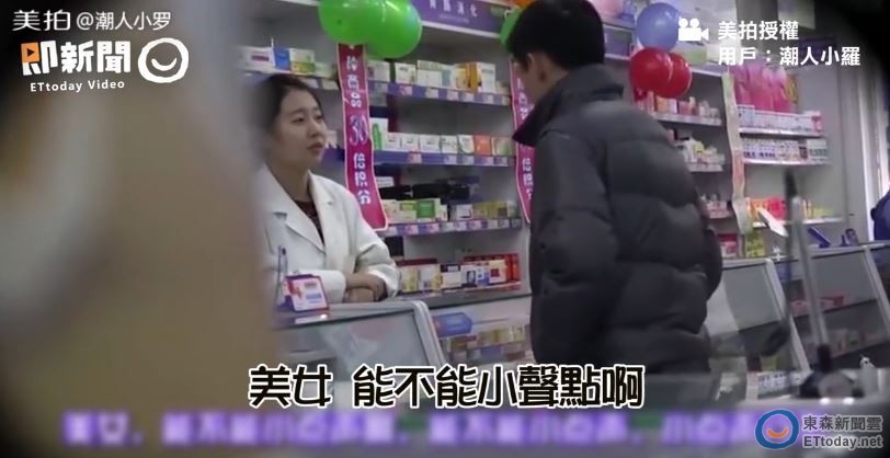 影片中第一位客人被要求「一字一句」大聲講出來,當他說出「想買驗孕棒」時,小姐又「朗誦」了一遍,導致客人遭到他人側目,尷尬表示「小聲點、小聲點!」第二位客人也是相同的情況,尷尬的笑著說「美女,你可不可以小聲點…」。