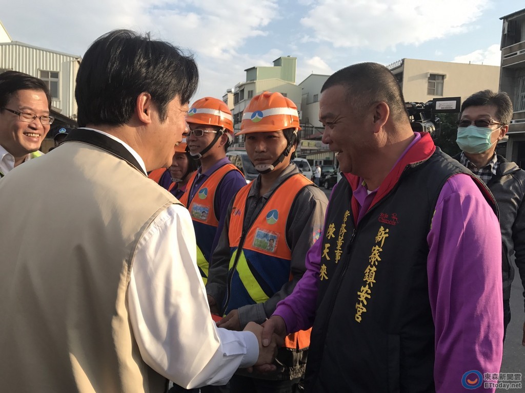 ▲台南市長賴清德,體恤環保局清潔隊員辛勞,24日下午由環保局長李賢衛陪同,前往安南區及北區,慰勞正在街上清運家戶垃圾的清潔隊員。(圖/環保局提供)