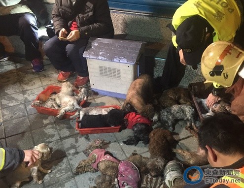 據《蘋果日報》報導,警消人員到場時,寵物店鐵捲門縫已冒出大量的白煙,趕緊在第一時間先將電鋸切開鐵門,並打破窗戶入內救出一隻隻被燒到捲曲的貴賓犬,消防隊小隊長見到眼前這般慘景,立刻下達命令,不管是用什麼方法都要盡量救,最後,還動用到了救護車的氧氣瓶呼吸面罩。