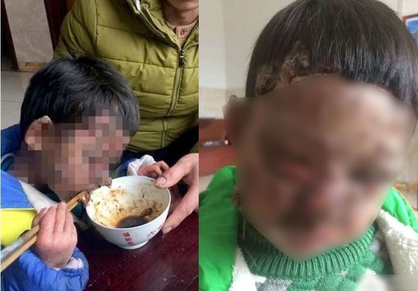 ▲男童臉皮長瘤流膿,相當痛苦。(圖/翻攝微博,下同。)