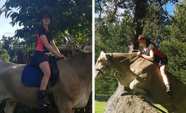 ▲澳洲少女被父母告知馬匹太貴養不起,就變成了「騎牛師」。(圖/取自IG:hanney_simpson)