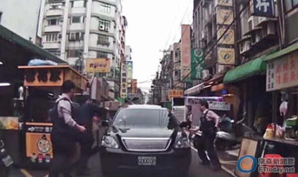 ▲警持槍棍狂敲 凌志贓車「就是不停」發狂倒車輾斃女童。(圖/記者蘇晟彥翻攝)