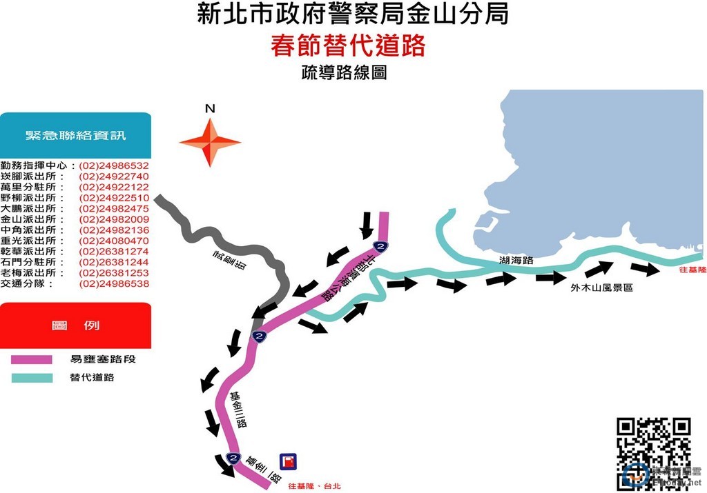 ▲金山警為疏解春節期間北海岸將出現的車潮,擬定多項疏導措施和多條替代道路,欲前往春遊的民眾可先行掌握。(圖/記者孫曜樟翻攝)