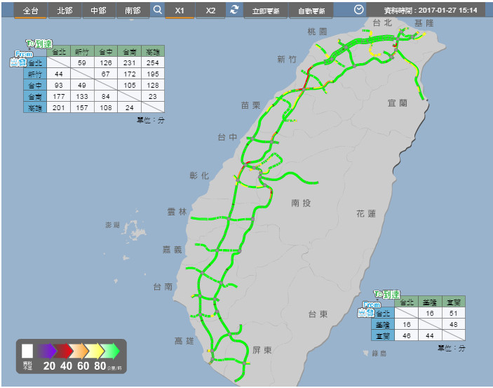高速公路表示,自今早5時起陸續出現返鄉車潮,但並未有嚴重塞車情形出現,直至下午國道1號14時起南下湖口到竹北塞車,時速僅約20公里左右;國道3號龍潭大溪走走停停,直至關西服務區到關西時速約30公里左右;國道5號雪隧南下宜蘭出現車流,但都仍相當平緩車流順暢。