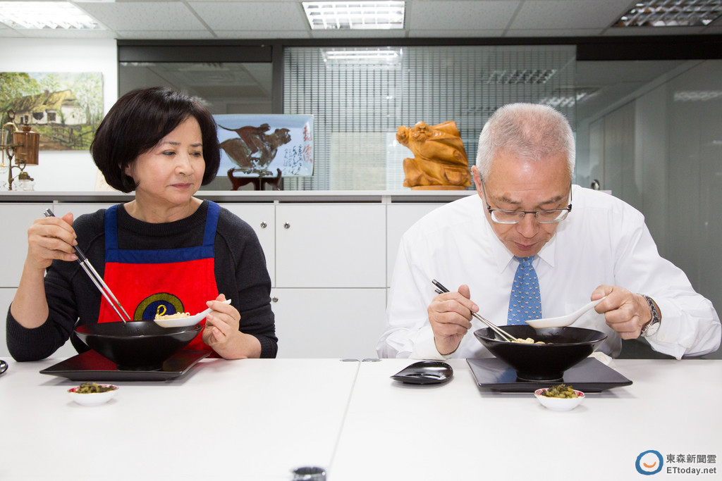 前副總統吳敦義已宣布參選國民黨主席大位,針對春節年菜,他也不忘派出妻子蔡令怡教大家製作牛肉麵,順便炫耀一下太太的好廚藝。不過,吳敦義吃完牛肉麵後,只謙虛地給蔡令怡85分。