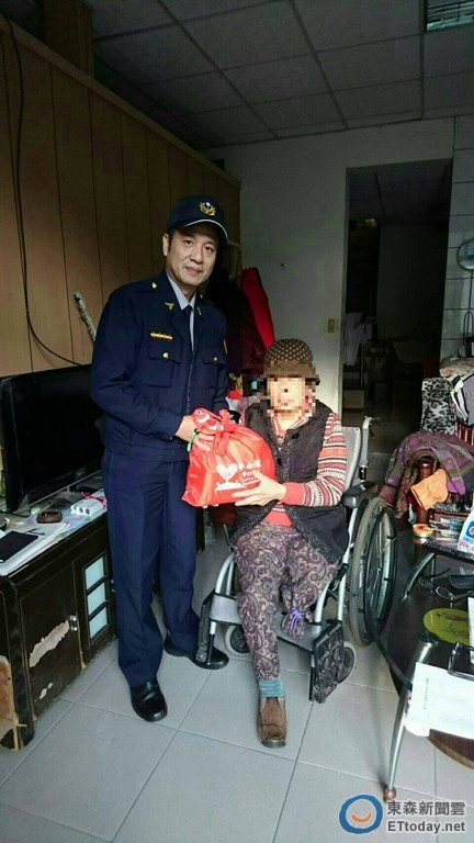▲82歲呂姓老婦獨居烏來又因病截肢不良於行,烏來分駐所警春節送上紅包和平袋慰問讓她感動不已。(圖/記者孫曜樟翻攝)