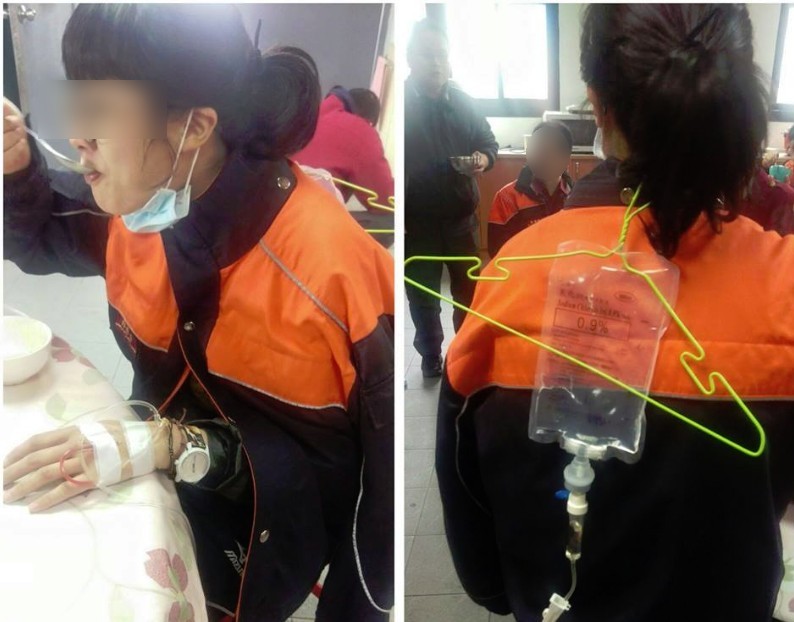 春節連假民眾歡喜過年,還有許多人在外默默付出,繼日前報導過消防員車庫圍爐後,近日有網友在臉書不公開社團《爆廢公社》發文表示,台北市政府消防局雙園分隊一名女隊員,春節值勤感冒仍堅守崗位,即使拿衣架吊點滴,仍繼續上班,照片曝光後,讓網友直呼不捨又感謝!