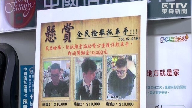 為了有效遏止詐騙集團,台中市警察局開放民眾懸賞抓車手,把詐騙車手提領的畫面,張貼在提款機旁邊,還列出幾項特徵,只要民眾檢舉幫助警方查獲,就能得到1萬元懸賞金,就連超商店員都特別注意領錢的人,這樣不但防止詐騙,還可能有錢可拿。